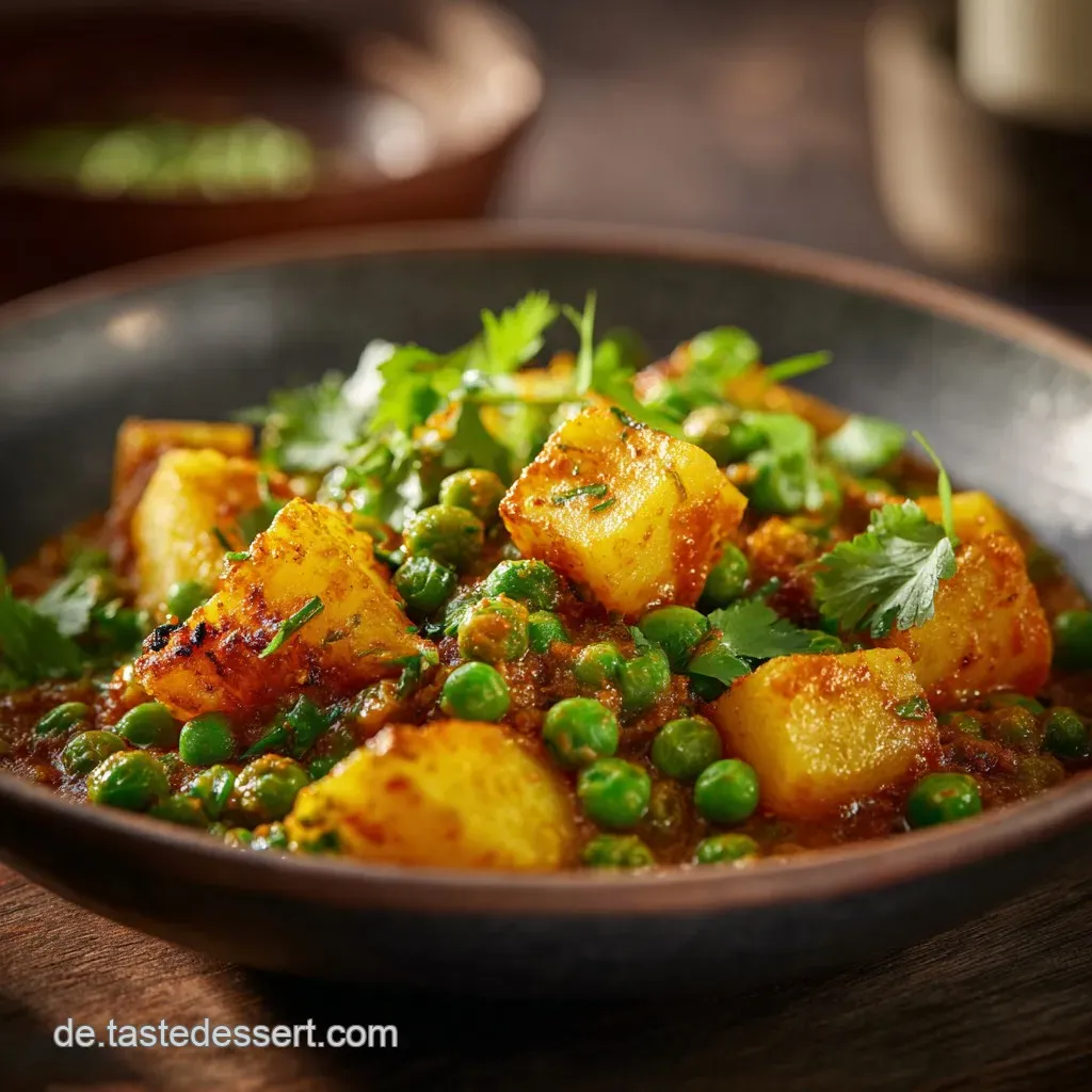 Der Name Aloo Matar bedeutet schlicht Kartoffel und Erbse, die beiden zentralen Komponenten dieses vegetarischen Currys. Die festkochenden Kartoffeln dienen als hervorragender Geschmacksträger, da sie die reichhaltige Masala Sauce perfekt aufsaugen.