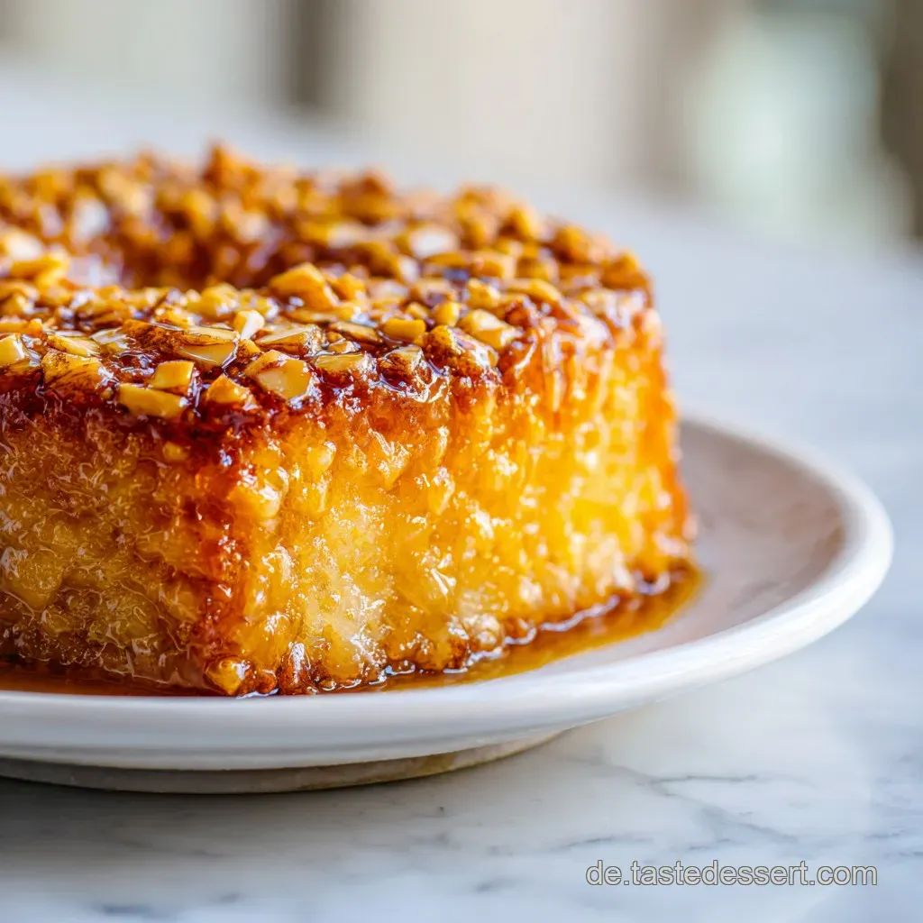 - Geschmack/Textur: Samtiger Teig trifft auf knackige, karamellisierte Mandeln und säuerliche Äpfel