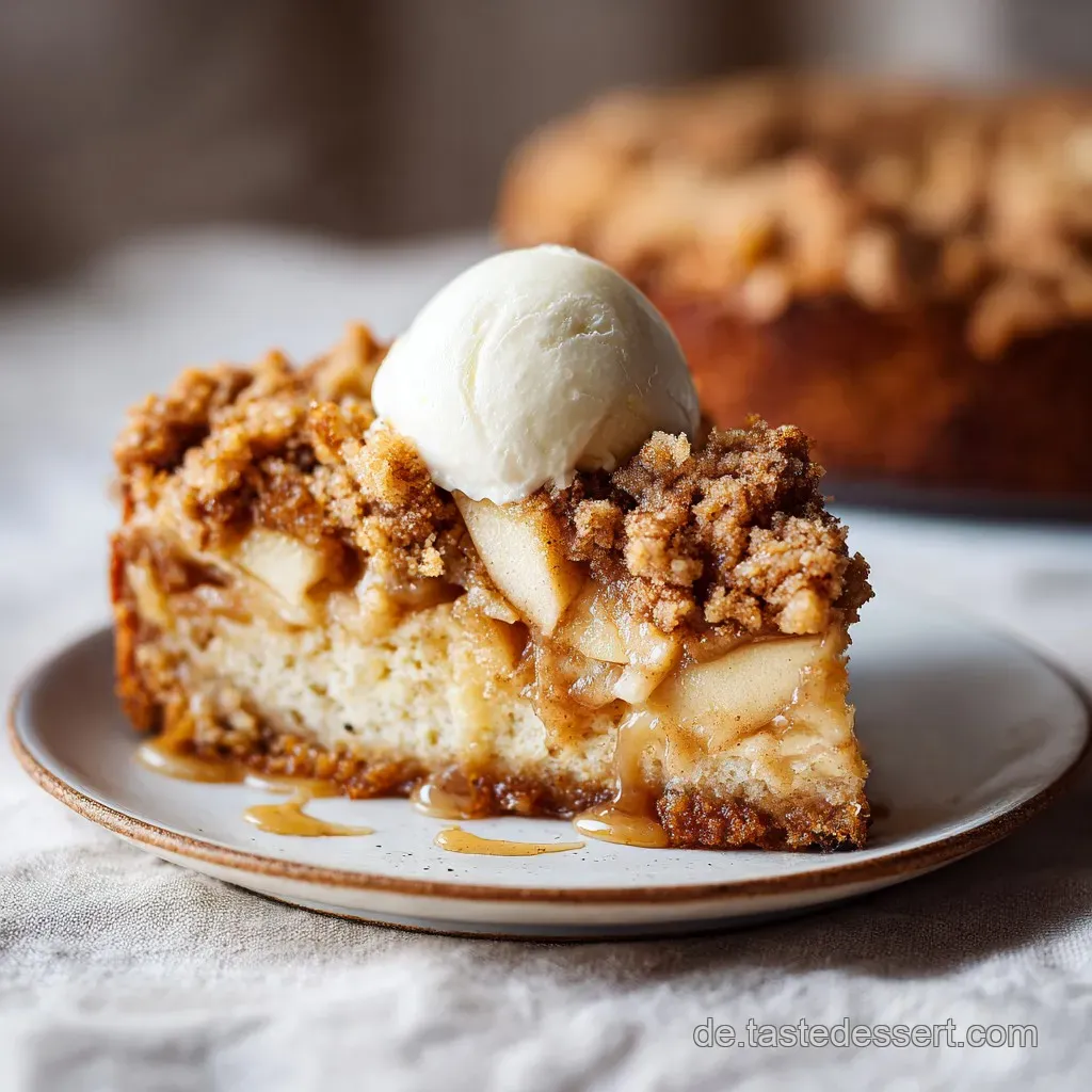 Ein Stück warmer Apfelkuchen mit Streusel schreit förmlich nach einer Begleitung. Der Klassiker ist natürlich ein Klecks frisch geschlagene Sahne mit einem Hauch echter Vanille. Wenn du es besonders dekadent magst, serviere den Kuchen lauwarm mit einer Kugel Vanilleeis.