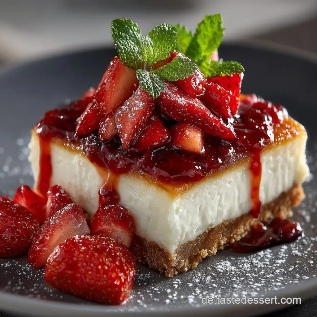 Die Kombination aus der cremigen, leicht säuerlichen Basis und dem fruchtig süßen Topping fängt die Essenz der Erdbeer Cheesecake Saison perfekt ein.