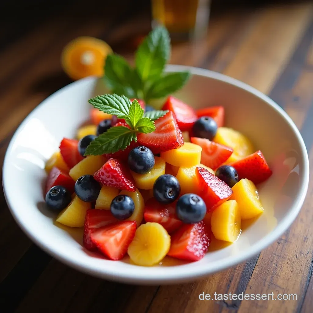 Dieser Obstsalat ist mehr als nur 'ne Schüssel Obst. Er ist eine kleine Party für deine Geschmacksknospen.
