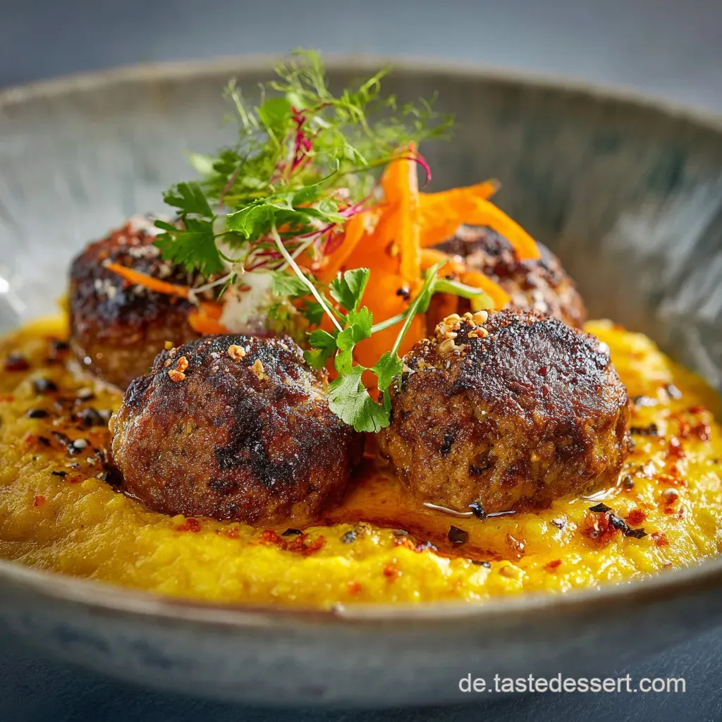 Die Magie dieses Rezepts liegt in der harmonischen Verbindung von Tradition und Ferne. Wir nehmen die klassische, bewährte Methode zur Herstellung von perfekten, saftigen Frikadellen, komplett mit Bindemitteln wie Ei und Zwieback, und veredeln diese Masse durch eine Prise Kreuzkümmel und geriebenen Ingwer, die bereits in den Bällchen eine subtile Würze verankern.