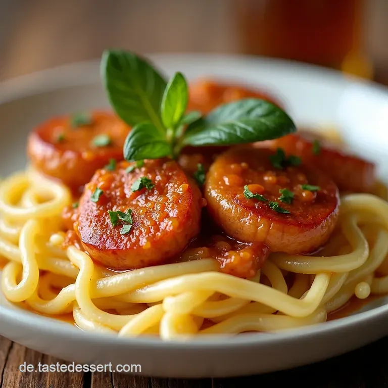- Fertigstellung: Die angebratenen Würstchen zurück in die Sauce geben. Nur noch 5 Minuten ziehen lassen, damit sie heiß werden, aber nicht platzen. Jetzt mit Salz und Pfeffer abschmecken.