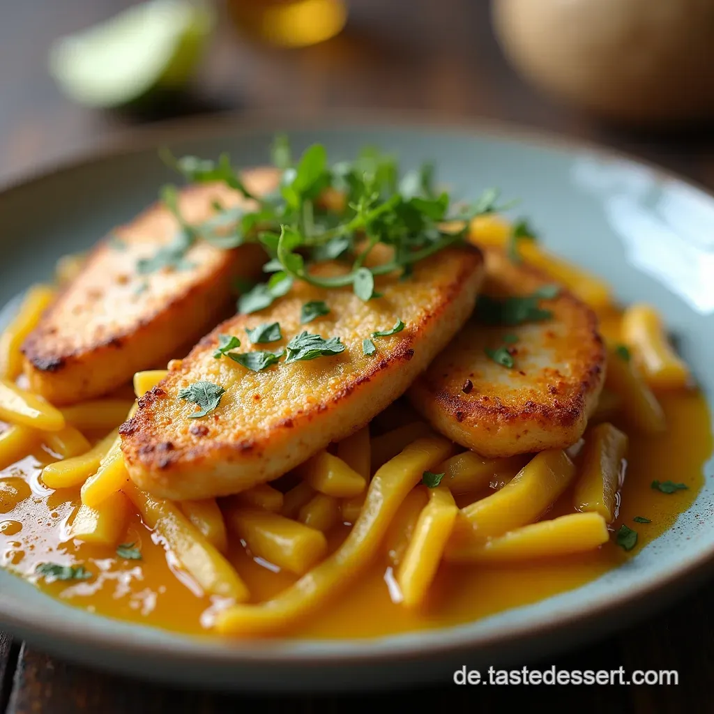 Das Rezept ist von Natur aus schon fast vegan! Solange Sie pflanzliches Öl (wie Kokosöl) verwenden und vegane Kokosmilch nutzen, ist es komplett pflanzlich. Da keine tierischen Produkte wie Sahne oder Joghurt verwendet werden (außer als optionale Garnitur), ist es ein echtes Fest für alle Veganer quasi das neue deutsche „Sonntagsessen“ ohne Fleisch!
