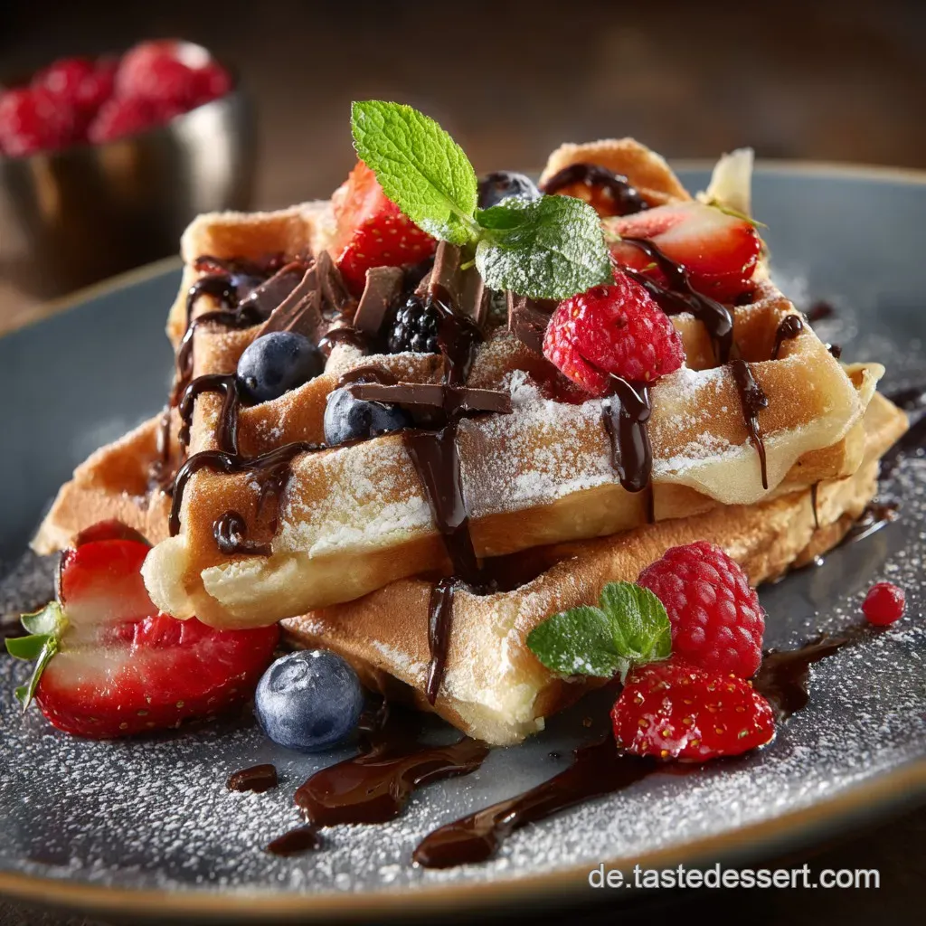 Klassisch passt eine Prise Meersalz, um den Schokoladengeschmack hervorzuheben, oder etwas Zimt oder Vanille. Für Textur können Sie die noch feuchten Waffeln sofort nach dem Überziehen mit gerösteten Nüssen, Kokosraspeln oder gefriergetrockneten Beeren bestreuen.