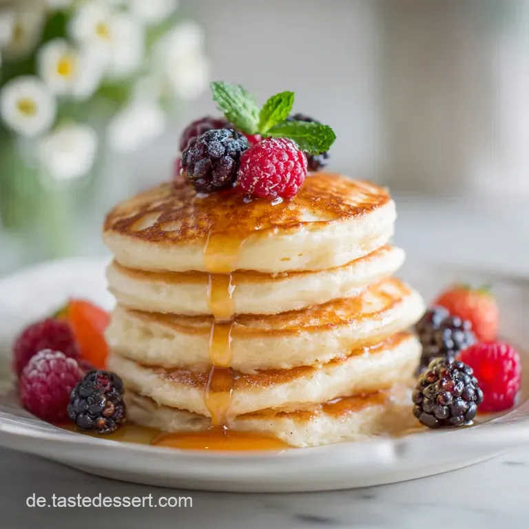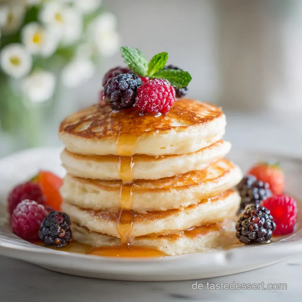 Diese Mini Pancakes sind mein absoluter Geheimtipp, weil sie stressfrei in der Vorbereitung sind und auf dem Tisch wie kleine Kunstwerke wirken. Während normale Pfannkuchen oft schwer im Magen liegen, schweben diese hier förmlich auf der Zunge.