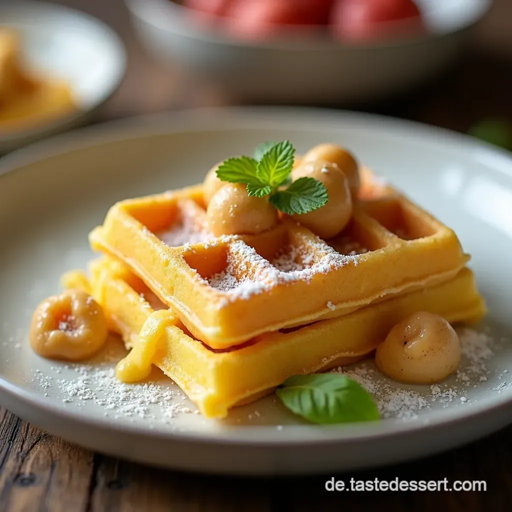 - Plating Ideen: Stapelt die Waffeln wie einen kleinen Turm! Frische Beeren dazwischen, ein Klecks Sahne obendrauf. Macht was her, glaubt mir! Oder ganz simpel: Eine Puderzucker Wolke.