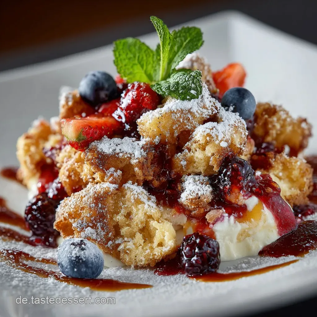 Wer es frischer mag, kombiniert den Schmarrn mit frischen Beeren (Himbeeren, Erdbeeren) und einem Klecks Naturjoghurt oder geschlagener Sahne, um die luftige Konsistenz zu ergänzen.