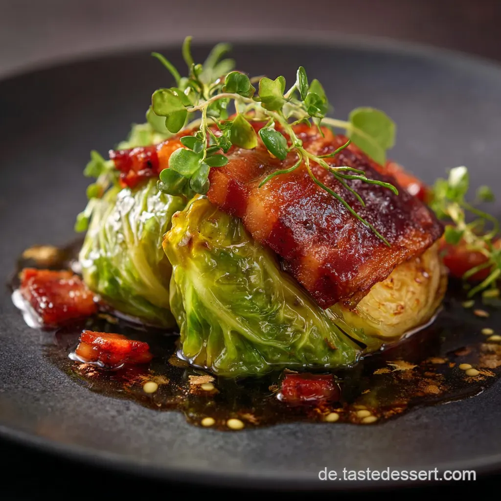 Die Süße des Ahornsirups wird bewusst eingesetzt und steht im direkten Kontrast zum salzigen, deftigen Speck und der natürlichen Bitterkeit des Rosenkohls, was einen ausgewogenen Geschmack ergibt.