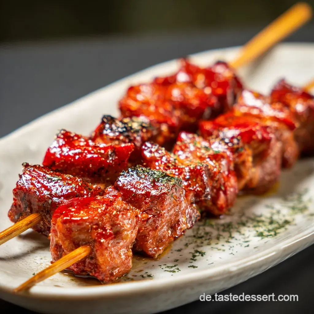 - Anrichten: Drapiere die Spieße auf Tellern und übergieße sie großzügig mit der samtigen Sauce.