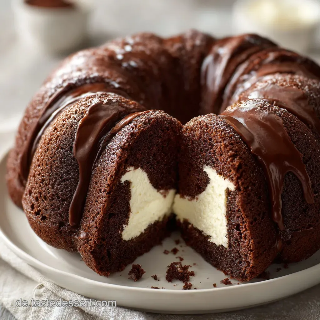 Backe den ultimativen saftigen SchokoGugelhupf mit Cheesecakefüllung für puren Genuss